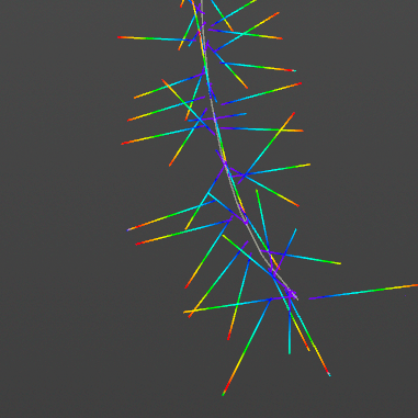 In the sequence, gravity is disabled so when the alien is shot, the acid floats freely. The acid spins along the corridor and forms a tunnel with an open center, leaving room for characters to move through. For this article I re-created the setup and broke it down into smaller, reusable components for future reference.